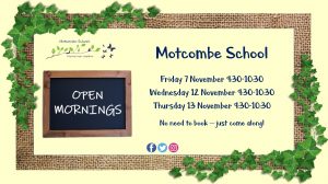 If you have a child who is due to start school next September, please come along to one of our open mornings to see what Motcombe has to offer!
