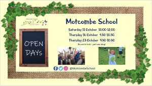 If you have a child who is due to start school next September, please come along to one of our open events listed below to see what Motcombe has to offer!